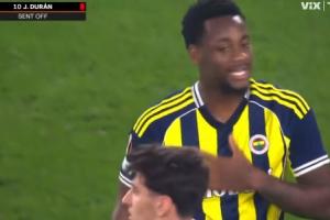 体育资讯11月28日讯 欧联杯联赛阶段第5轮,费内巴切1-1战平费伦茨瓦罗斯,费内巴切前锋杜兰在补时阶段头顶对手,被裁判红牌罚下。