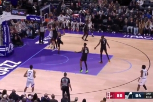 GIF-亚当斯单手帅气抓帽 推反击后接杜兰特分球暴扣