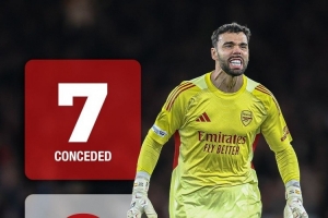 据媒体统计,拉亚本赛季英超零封8场,仅丢7球,零封场次甚至多于丢球数量。