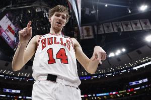 公牛小将布泽利斯首节疯狂造杀伤,西亚卡姆早早被造到2犯无奈下场。