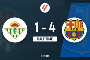 体育资讯12月7日讯 北京时间1:30,西甲第15轮皇家贝蒂斯vs巴塞罗那,比赛在塞维利亚奥林匹克体育场打响!上半场,安东尼破门帮助贝蒂斯取得领先,但随后费兰·托雷斯2分钟2球将比分反超!佩德里助攻巴德吉再下一城;费兰远射破门完成帽子戏法!半场结束,巴萨暂时4-1领先贝蒂斯。