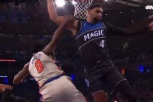 GIF-贝恩怒砸阿努诺比是因为后者空中拉拽了萨格斯 裁判最终判了阿努诺比出界!