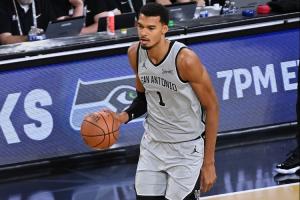下半场,文班亚马依靠夸张的身体天赋与出色的篮球技术,频频击破对手的多人包夹与围追堵截,帮助球队攻克强敌,拿下胜利!