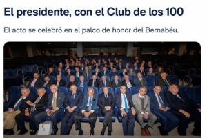体育资讯11月22日讯 皇马官网报道,俱乐部主席弗洛伦蒂诺在伯纳乌球场荣誉包厢出席传统“百人俱乐部”午宴,设宴招待俱乐部最资深的会员们。