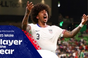 水晶宫2冠+金杯赛亚军!官方:中卫理查兹当选2025美国足球先生