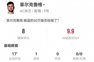 下一篇: 处子球+制胜球!官方:菲尔克鲁格当选米兰1-0莱切的全场最佳