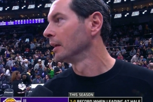 体育资讯11月24日讯 NBA常规赛,湖人半场62-55领先爵士。