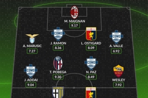 whoscored本轮意甲最佳阵:迈尼昂、帕斯领衔 韦斯利、波贝加在列